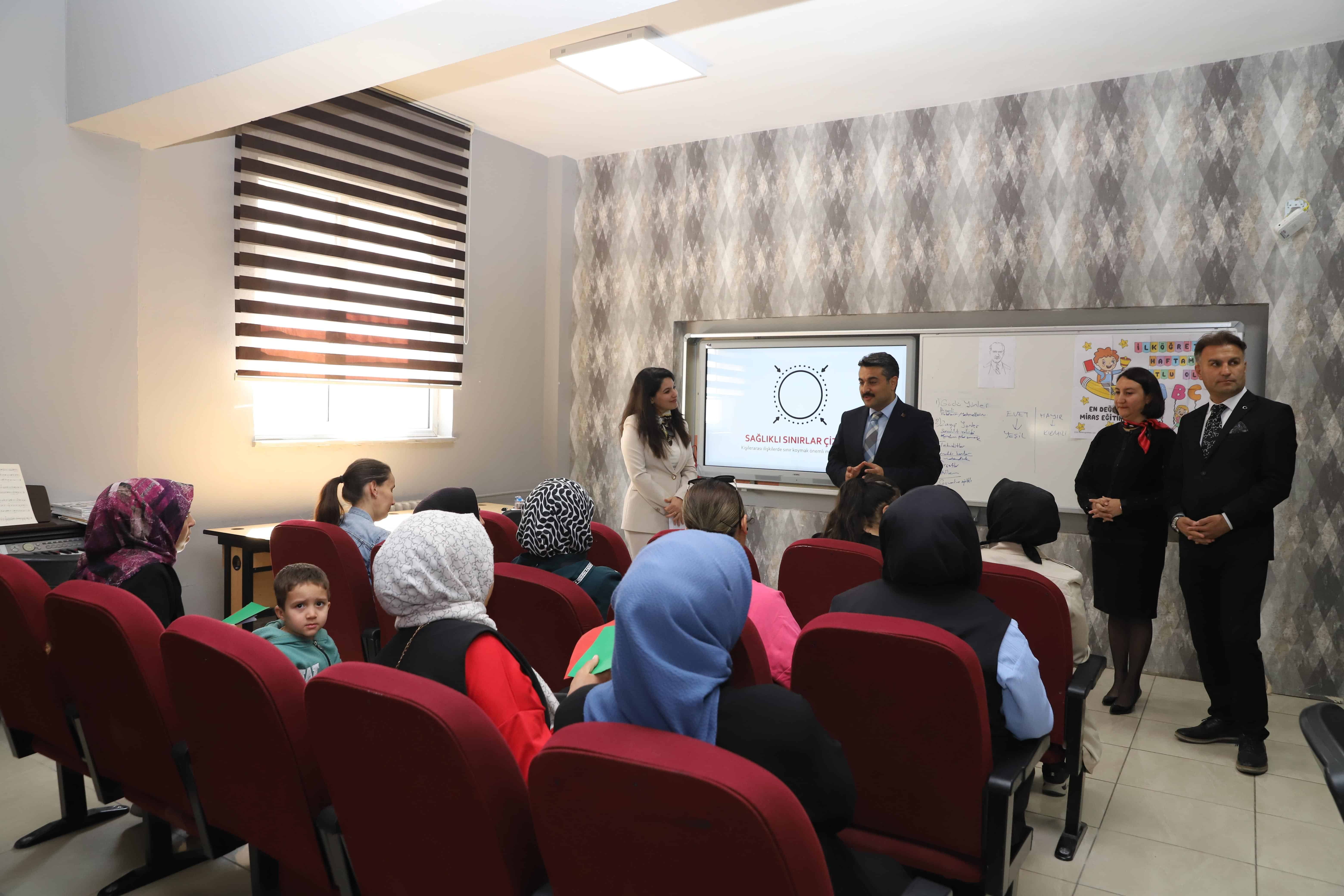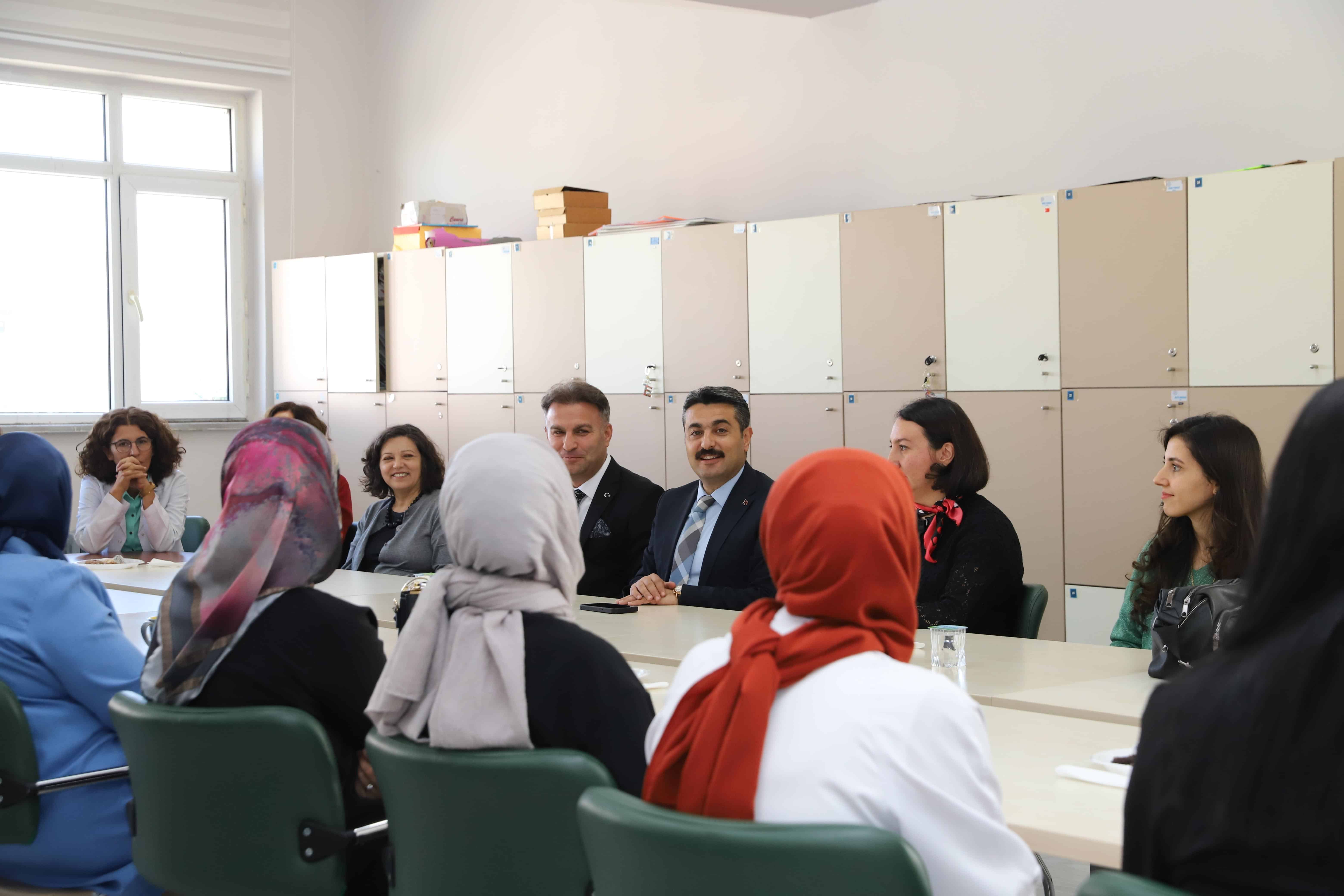 Daha sonra öğretmenler ile bir araya gelerek, görüş alışverişinde bulunan Erdoğan; Aile yılı ve eğitimlerine değinerek "Ailelerin eğitime katılımı, çocuklarımızın başarısında kritik bir rol oynuyor. Bu kurslarla velilerimizin bilgi ve becerilerini artırarak, öğrencilerimizin stres yönetimine, başarılarının gelişimine daha fazla katkı sağlamayı hedefliyoruz." dedi.